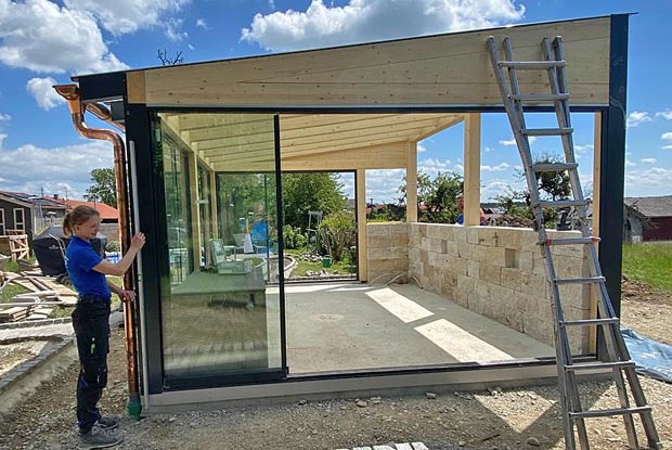 Vielfältige Baustellen lernte Christina Hartl in ihrem Pflichtpraktikum kennen. Hier arbeitete sie bei einem Gartenanbau mit.