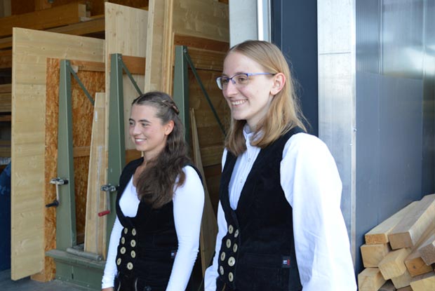 Elisabeth: Und ich habe mir gedacht, jetzt haben wir schon zwei Zimmerinnen in der Familie, das reicht! Dann probiere ich es mal als Schreinerin. Aber beim Praktikum habe ich gemerkt, dass man schon viel drinnen ist. Deswegen passt Zimmerin doch besser, weil ich viel draußen an der frischen Luft sein kann.