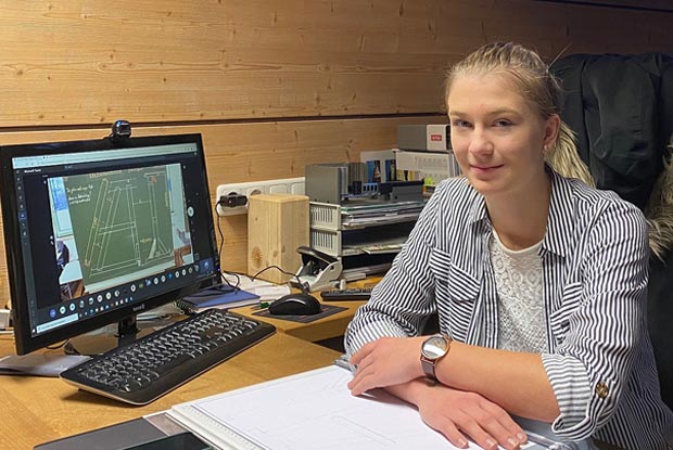 BGJ-Zimmerin Christina Hartl (17) sitzt coronabedingt aktuell im Homeoffice. Denn die Berufsschule Traunstein hat auf Distanzunterricht umgestellt. Für die angehende Zimmerin bedeutet das: Der Praxisunterricht in der Werkstatthalle fällt aus, geübt wird zuhause.