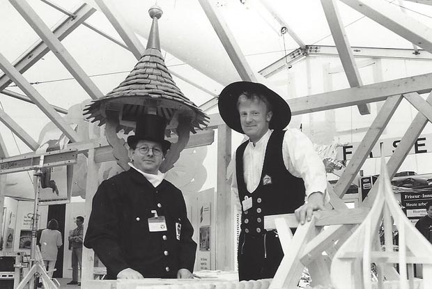 "Weg vom Lernen, draußen sein, etwas mit den Händen schaffen", diese Argumente haben Gottfried Schlemmer (r.) überzeugt, eine Zimmerer-Ausbildung zu machen. Darüber sprach er auf dem Berufsinfomarkt 1994.