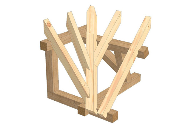Die Wettbewerbsaufgabe war anspruchsvoll, bestand sie doch aus einer Kehlecke mit verkanteter Pfette. Eine Herausforderung war der zusätzlich verkantete Strahlenschifter. Das schwierigste Teil in diesem Modell. Die Zeitvorgabe betrug 8 Stunden.
