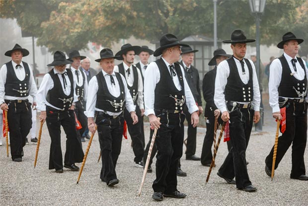 Beim Verbandstag 2019 des LIV in Altötting kamen zahlreiche Innungsmitglieder in traditioneller Kluft, hier sogar mit Stenz.