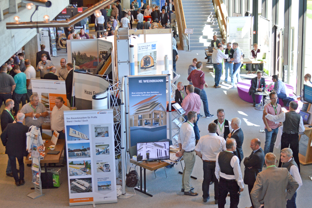 Am Freitag widmeten sich die Fachvorträge bautechnischen Themen. Der Schwerpunkt lag auf "Forschung & Entwicklung", vorgetragen durch Prof. Stefan Winter von der Technischen Universität (TU) München und wissenschaftlichen Mitarbeitern seines Lehrstuhls. Sie mahnten zur Vorsicht ab Gebäudeklasse 3, empfahlen angesichts des schwierigen Nachweisdickichts die Reduzierung der gegenwärtigen Produkt- und Konstruktionsvielfalt, betonten den Sinn von Standardisierung und erläuterten den Nutzwert der von ihnen entwickelten Bauteilkataloge mit allen geforderten Nachweisen.