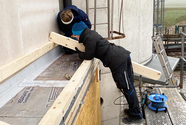 Vor kurzem hat sie die Panoramasicht vom Dach eines neuen Anbaus genossen. Dieser gehört seit kurzem zur familieneigenen Zimmerei. Für Christina Hartl war das Projekt eine schöne Abwechslung, denn: „Wegen des Homeschoolings sind wir ja die meiste Zeit daheim“, besser gefällt ihr die Arbeit auf der Baustelle: „Wenn wir etwas bauen, geht der Tag schneller vorbei und ich bin draußen an der frischen Luft.“ Für den Anbau hat sie zum Beispiel Holzbalken auf die richtige Länge gebracht, Dachpappe verlegt und Dachschindeln draufgelegt – im Team mit ihrer Schwester und ihrem Papa.