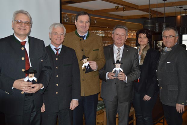 Gruppenfoto auf der Bezirksversammlung 2016: (v.l.) Dr. Helmut Graf, Peter Aicher, Alois Brundobler, Franz Meyer, Christine Schiller und Xaver Haas.