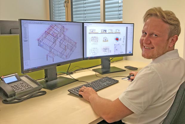 Wer eine Zimmerer-Ausbildung macht, hat viele Karrieremöglichkeiten und kann sich etwa zum Vorarbeiter, geprüften Polier oder Zimmermeister fortbilden. Johannes Hertle (26) hat sich nach der Zimmerer-Lehre für eine Fortbildung zum Holztechniker entschieden. Im Interview erzählt er, wie sein aktueller Arbeitsalltag aussieht.
